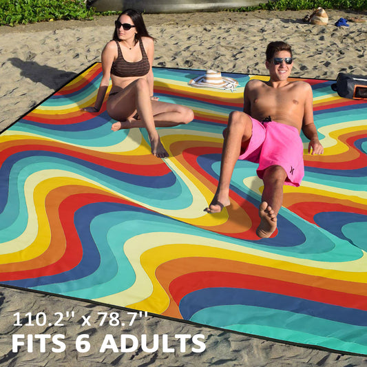 Roomrite Sand Free Beach Blanket 79"x110" - Extra Large Beach Mat Waterproof Sandproof Portable Quick Drying Lightweight with 4 Ground Stakes & Carry Bag for Beach Camping Picnic Hiking