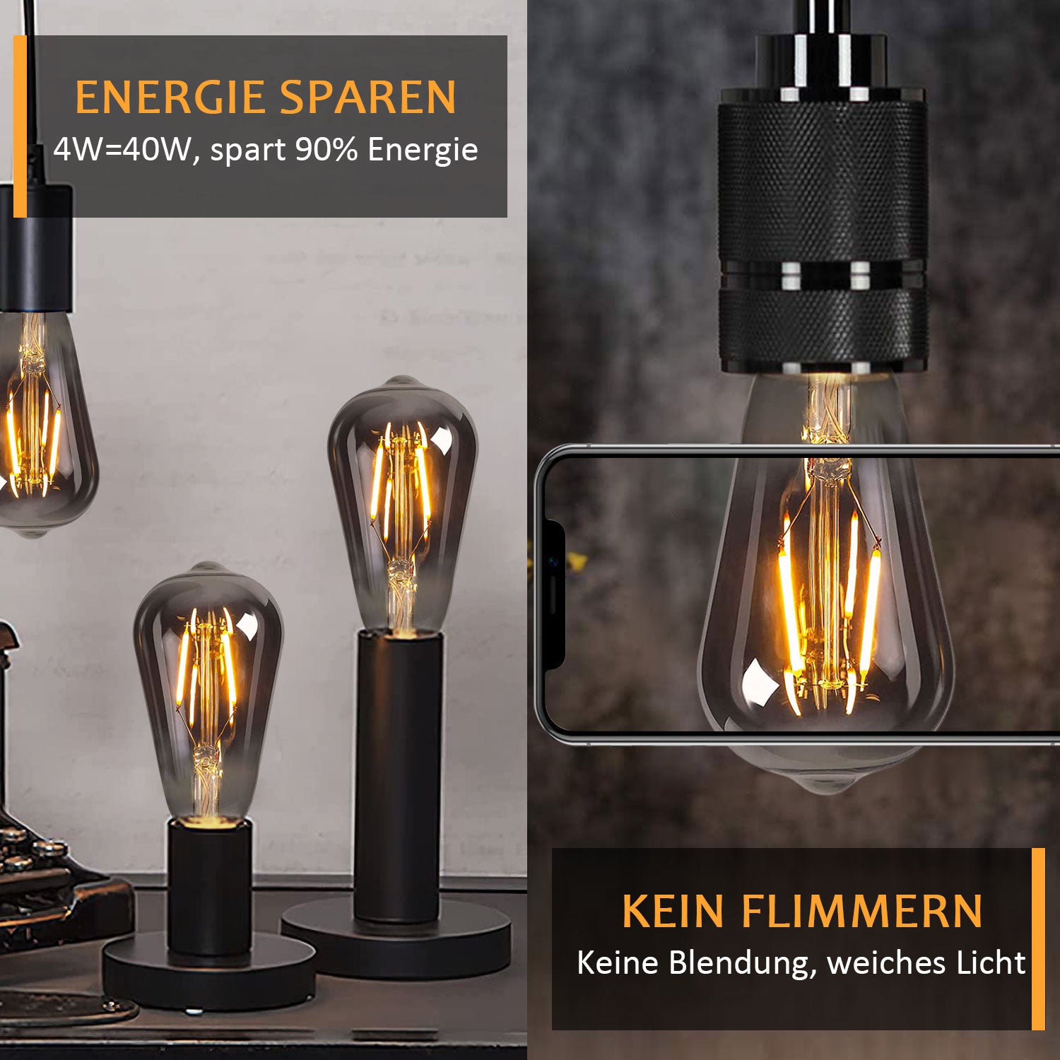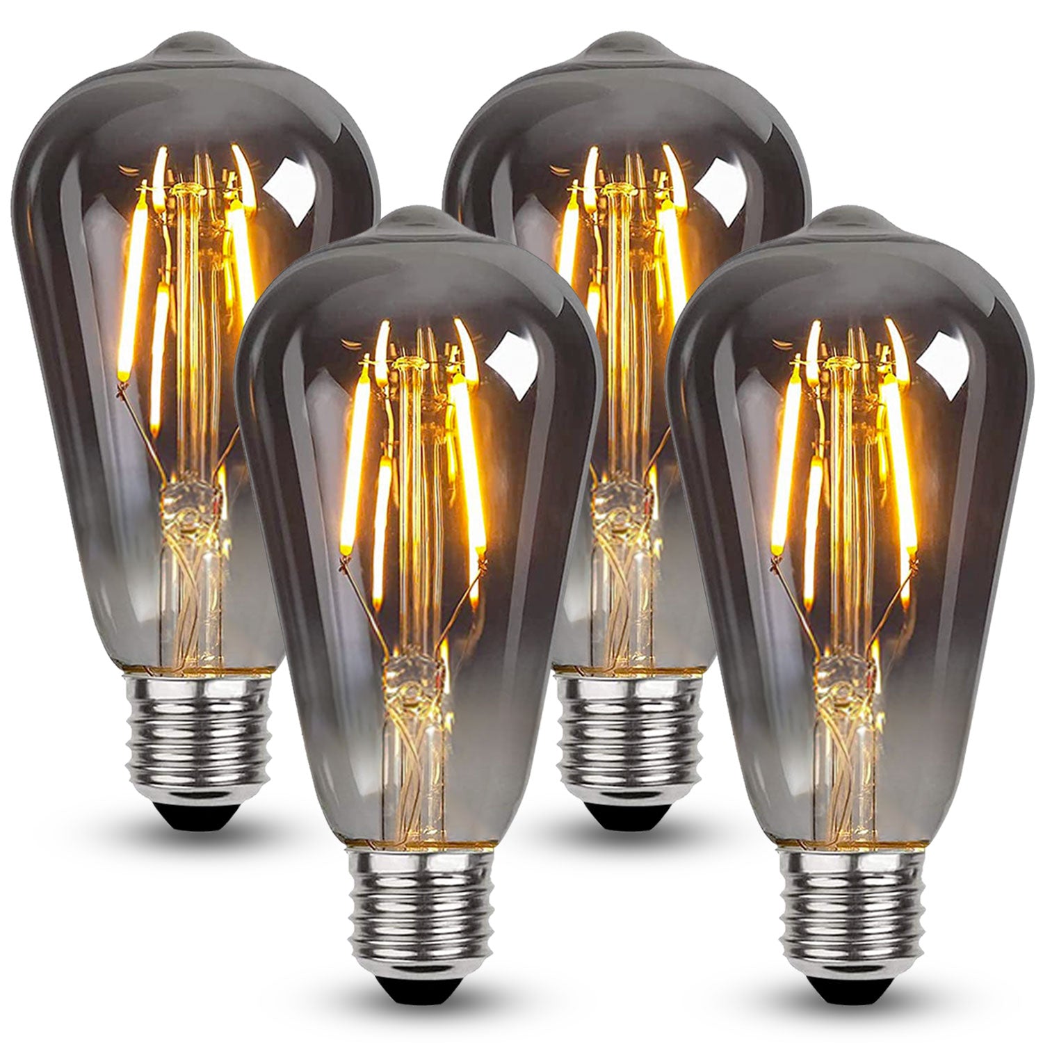 - LED vintage edison light bulbs with LED filaments inside Smoky gray glass for warm, nostalgic ambiance.